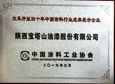 2019年3月,,寶塔山漆被中國涂料工業(yè)協(xié)會評為“改革開放四十周年中國涂料行業(yè)成果展示企業(yè)”