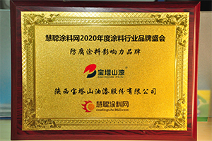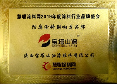 2020年7月,寶塔山漆榮獲第十六屆2020年度涂料行業(yè)影響力品牌頒獎盛典活動中榮獲”防腐涂料影響力品牌