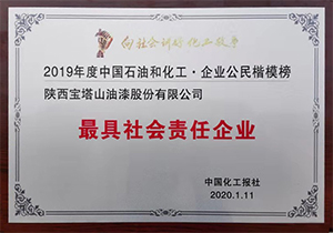 2020年1月11日,寶塔山漆被評為2019年度最具社會責(zé)任企業(yè)