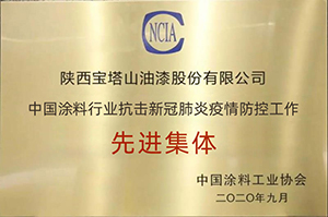 2020年9月,寶塔山漆獲評“中國涂料行業(yè)抗擊新冠肺炎疫情防控工作先進(jìn)集體”