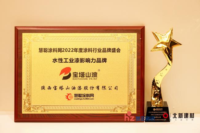 2022年7月,在2022年度涂料行業(yè)品牌盛會上,寶塔山漆榮獲“水性工業(yè)漆影響力品牌”。