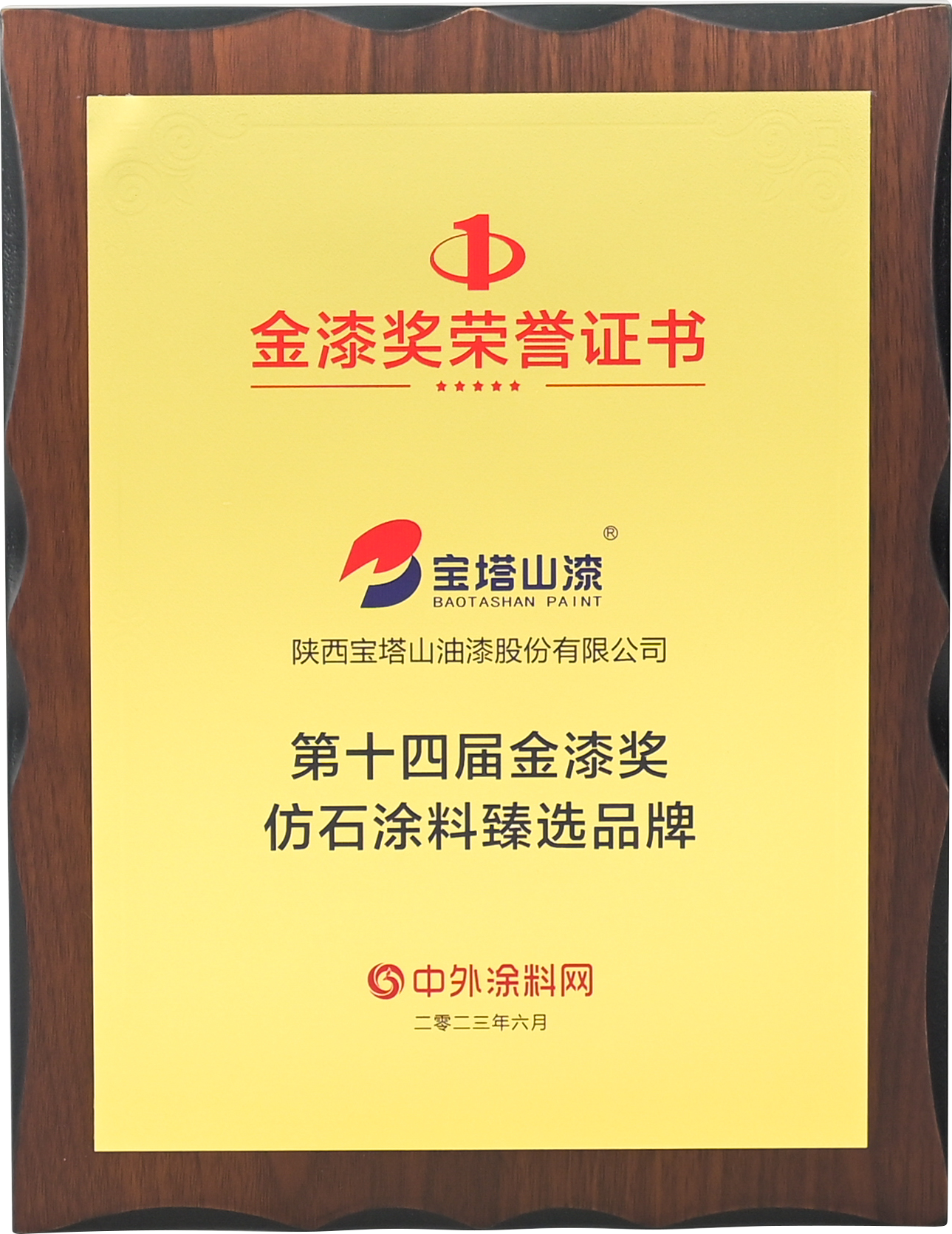 2023年6月,寶塔山漆榮獲“第十四屆金漆獎杰出外墻涂料品牌”。